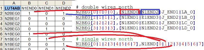 And the following block provides a tile.csv example (in this case LUT4AB.csv).